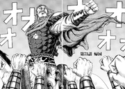 Despite his ruthless nature, Duke Hyou had a lighter side. He celebrated alongside the Hi Shin Unit after Shin’s victory over Man Goku and even pressured Ou Ki into drinking with him after their triumph at Dakan Plains. With no children of his own, he began treating Shin as a battlefield protégé before his eventual death.