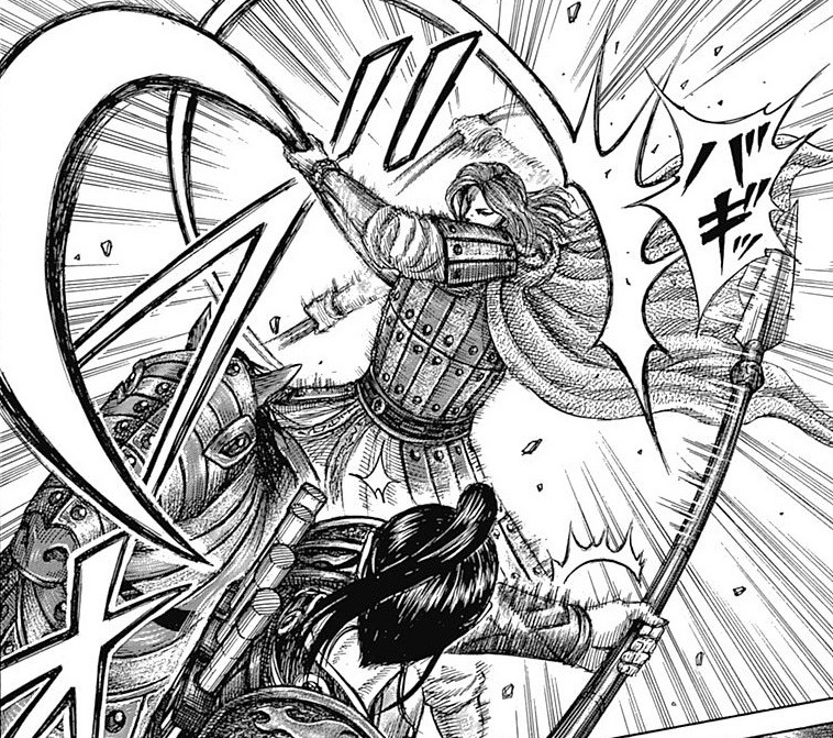 After not participating in the battle the first two days, on the 3rd day after a large offensive attack from the Gyoku Hou Unit which was leading one of Qin's 3 armies, Earl Shi came to the battlefield and started participating in the battle. The earl and his army were able to devastate the ranks of the Gyoku Hou, the earl personally slaying dozens of their soldier in an overwhelming manner. His soldiers could only be astonished at their general's intake strength after year of imprisonment with some commenting that it had only grown, one of the earl's soldier comments that it must be the result of years of resentment before another soldier orders him to keep to himself as such words would only remind the general of the old days.