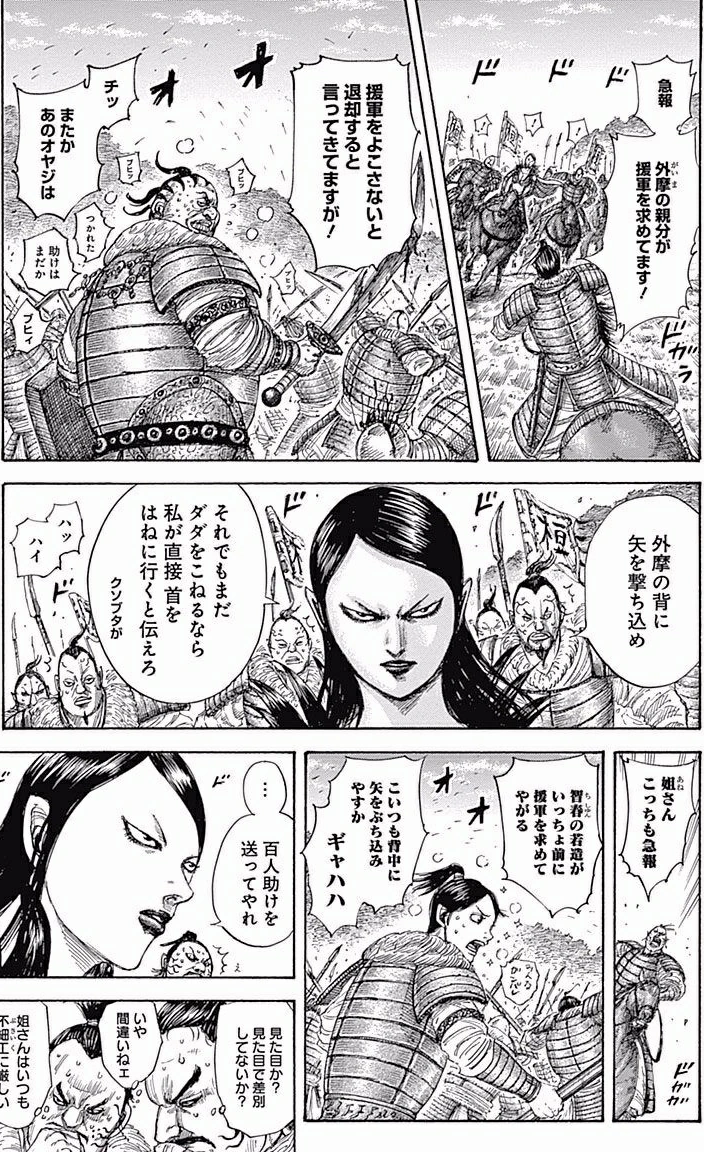 During the Battle of Kokuyou Hills he sends a request for reinforcements to his Commander, Koku'Ou. Saying he will retreat from his location if reinforcements didn't arrive, but Koku'Ou instead orders archers to shoot into his rear, saying she will personally kill him if he doesn't stop complaining.
