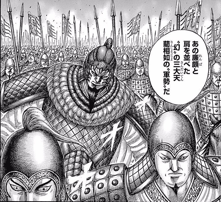 | Battle of Ba Hills | Escorted and protect their great general, Rin Shou Jo. | The Zhao Commander-in-Chief has a face-to-face meeting with the Qin Great General Ou Ki, the Wyvern of Qin and his commanders. Rin Shou Jo discusses his opinions on the warring states with Ou Ki. |