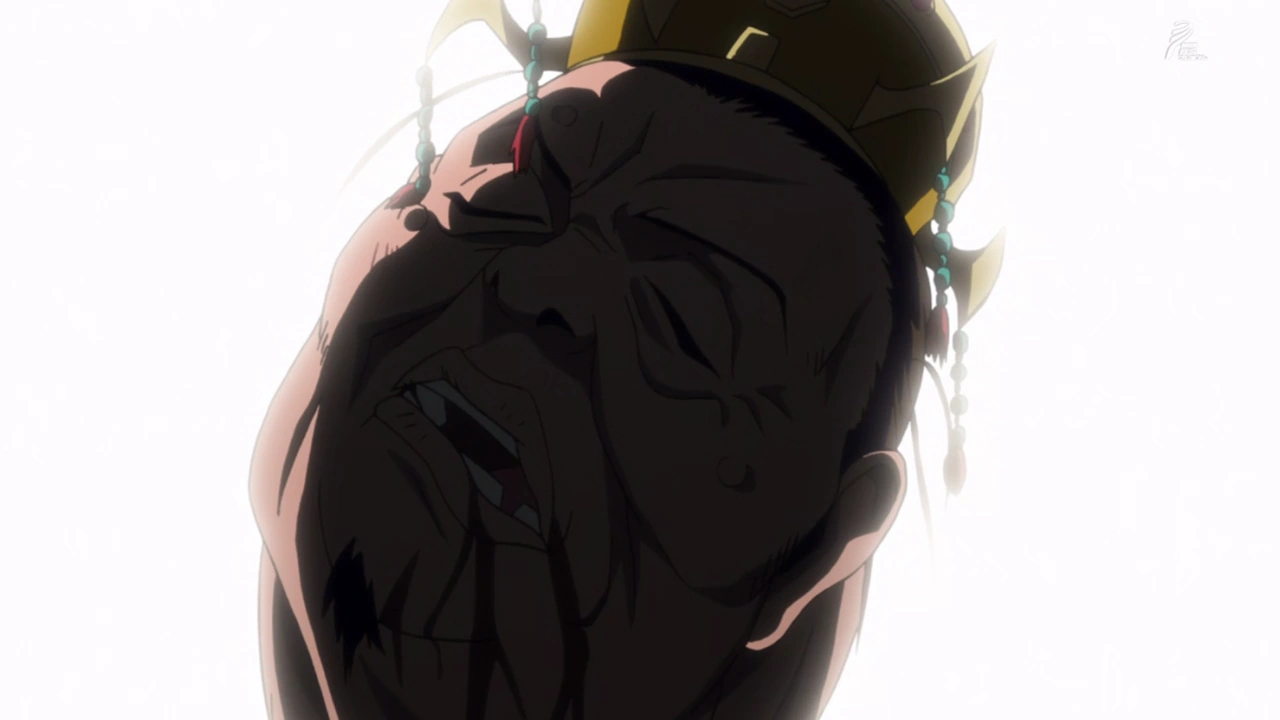 During the attack of the mountain people on the royal court he was fleeing to the throne room and killed there by Bajio and Shunmen.