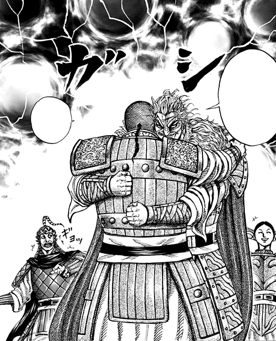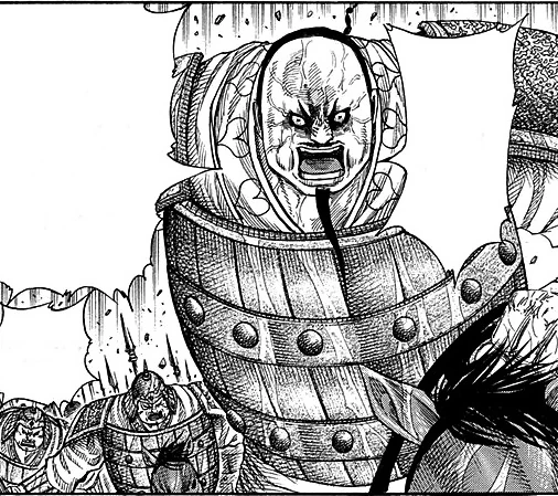 Kai Shi Bou is Ren Pa's right arm and the leader of Four Heavenly Kings - an elite group of deputies who's skilled is considered miles ahead of even Ou Ki's vassals.[1] He possesses vast experience as a commander who has earned over a hundred victories even when operating by himself.[2] His abilities were good enough to clash with Qin's vice general Kan Ki.
