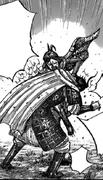 While initially indifferent to her Qin allies, especially towards Heki, she would slowly befriend the Qin General as they fought together in the Gyou Campaign against the Shun Sui Ju Army and the Quanrong of Ryouryou.