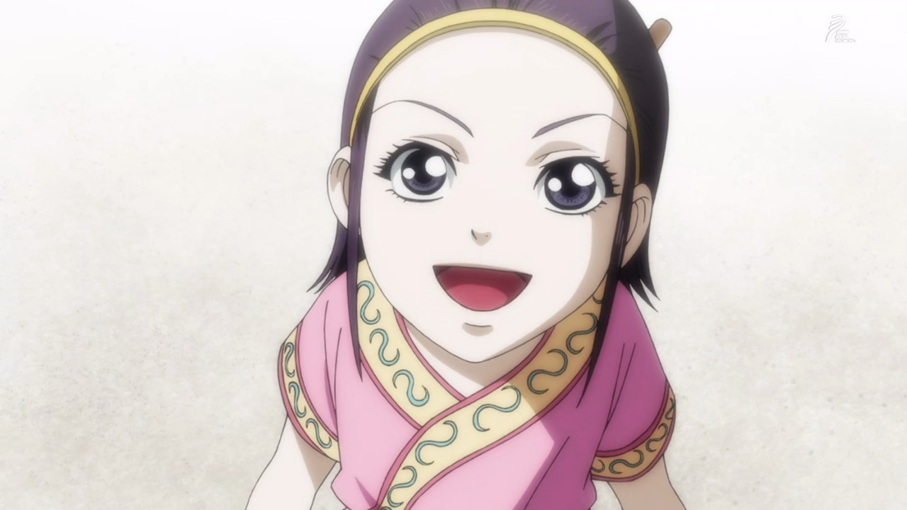 Kyou grew up in the Ou Family's household and was raised as a servant like her adoptive mother, growing very close to Ou Ki. Even practicing with and joining him whenever he trained as a child. At one point, She and Ou Ki promised that if she could conquer 100 cities/castles he would make Kyou his wife. As soon as she was old enough, she became a close retainer of his, accompanying his army into the battlefield and achieving multiple accomplishments on various campaigns. It was during of these wars that she met Shou Bun Kun, and they became close friends as he acknowledged her talent in warfare. She came face to face with the king when he came to congratulate the army on conquering the region of Nanan, recognizing him as her father but unable to reveal the truth. He realizes this as well and compliments Kyou on her hard work in the campaign. Sometime after first meeting her father, King Sho would secretly issue a decree to suppress any mention of her origins to prevent her from being harmed by anyone who could use such information for ill intent.