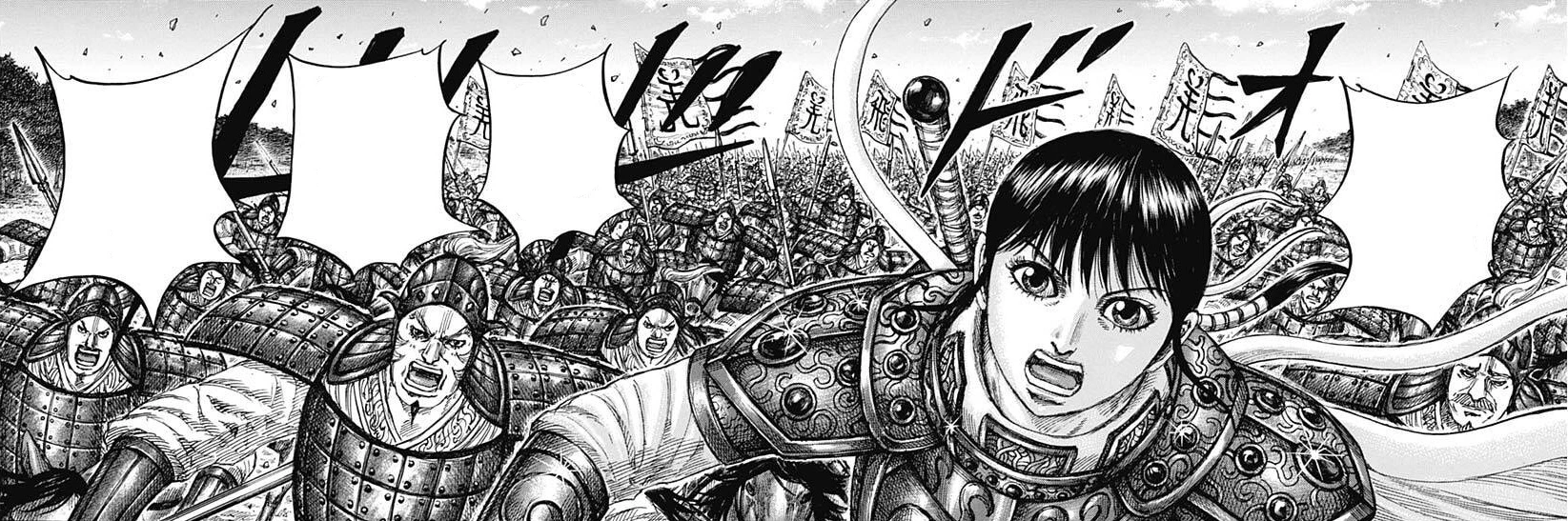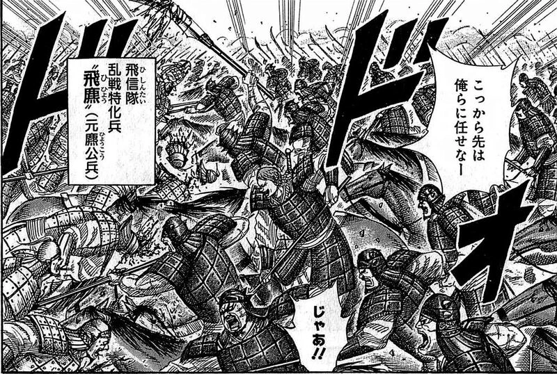 Kyou Kai gives Shin time to slay the Zhao's Commander-in-Chief Kei Sha and Slays Ryuu Tou, the Left Hand-man of Ki Sui. |