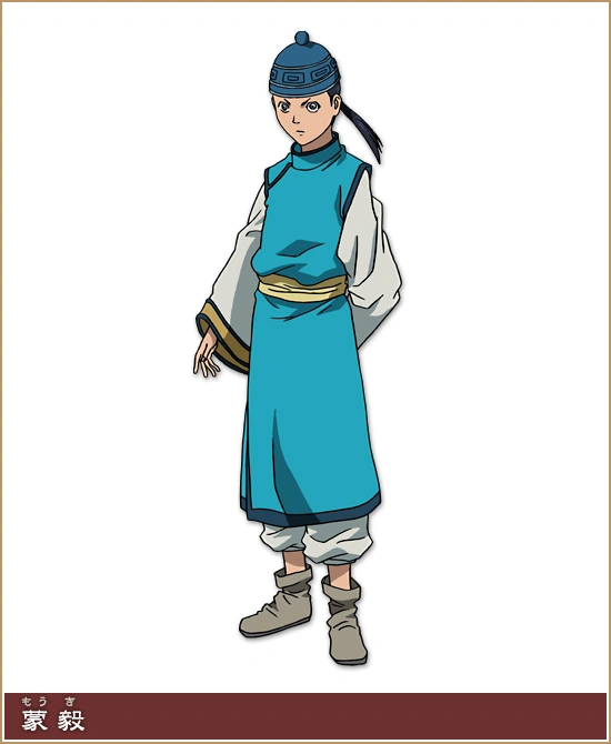 Mou Ki is a Strategist of the Mou Bu Army and one of the most skilled tacticians in the state of Qin. A graduate of Qin’s Strategist Academy, he was regarded as Shou Hei Kun’s top student of his generation, alongside Ka Ryo Ten and his older brother. He is the younger brother of Mou Ten, the youngest son of Great General Mou Bu, and the grandson of the late Great General Mou Gou.