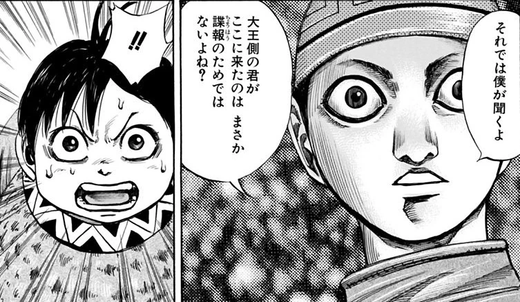 Mou Ki's first experience of war was the Battle of Sai. He, along with Kai Oku and 100 vassals was sent by Shou Hei Kun to shore up the defenses at Sai. Shin comments that they are a 'strange bunch'. He notes Ei Sei and Shin's close relationship. He is stunned when he witnesses Shin's raw martial prowess.