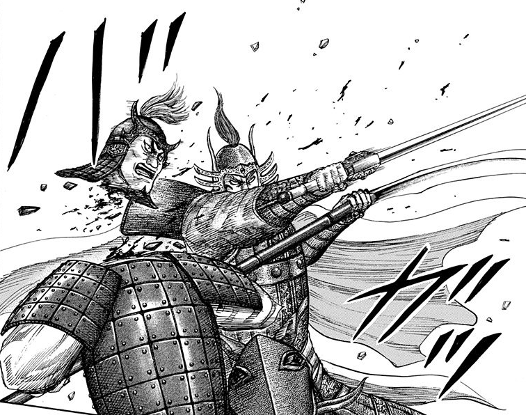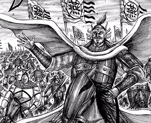 Just before the Battle of Kankoku Pass when the armies are gathered in front of Kankoku, he observes Ou Sen from afar, stating that he would make an interesting opponent and is informed by a scout of a weakness in the Qin General's position.