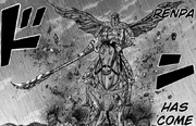 When the army arrives, it is led by Haku Ki Sai who is the commander-in-chief, and this shocks some of the Heavenly Kings until Ren Pa explains that he is just a figurehead for the war. He does the pre-battle ritual for everyone except Gen Bou then tells them to get into their positions. Watching the first battle unfold, he notes the resistance on the Qin side and the devastating effects of Gen Bou's tactics. Ren Pa later comments that Gen Bou's retreat is in his nature as he is a strategist, not a warrior general and he must have accomplished his task.