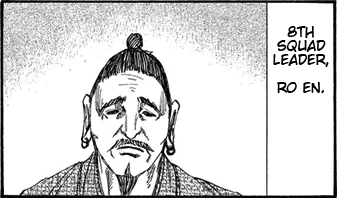 Ro En is a former 10-Man Squad Leader of the Qin Military and one of the original squad leaders of the Hi Shin Unit since their days as a 100-Man Unit that joined during the Battle of Bayou. After fighting with the unit for years, he retired from active service after the Sanyou Campaign.