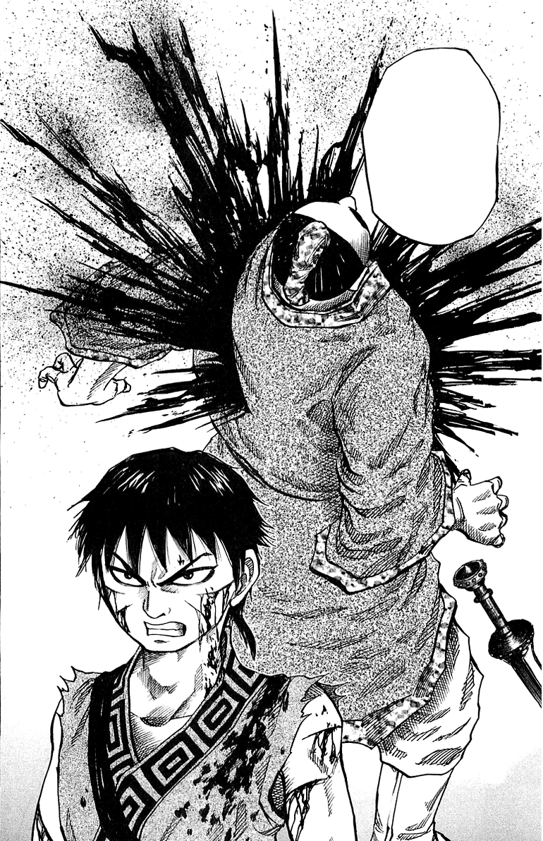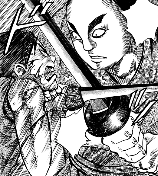Sa Ji's first appears with Gi Kou and Shi Shi as they watch Ei Sei's group ride into Kanyou. We learn that he was highly ranked in the capital after he punches a Gendarmes and there was no retaliation.