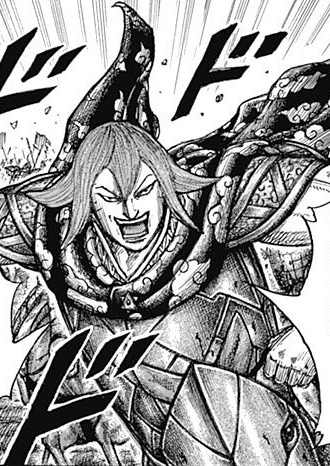 During the Battle at Gecchi Plains, she entered the battle without waiting for orders from the Juuko HQ and engaged the arriving Qin reinforcements led by Roku O Mi. After the arrival of Qin-allied forces, the Go Hou Mei Army engaged the Ran Bi Haku Army. After Go Hou Mei's change of strategy, the Ran Bi Haku Army was sent to reinforce the Mou Bu Army and the Tou Army, and only the Roku O Mi Army was left to hold back the Sen To'Un Army.