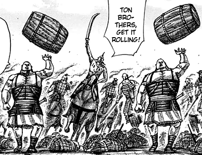 They were present at the Battle of Kankoku Pass. They were taken along with Kan Ki's best fighters to Chou Tou's section of the Pass. They were seen throwing barrels of oil down to hit the ground around the siege tower which lit the towers on fire, effectively destroying them.